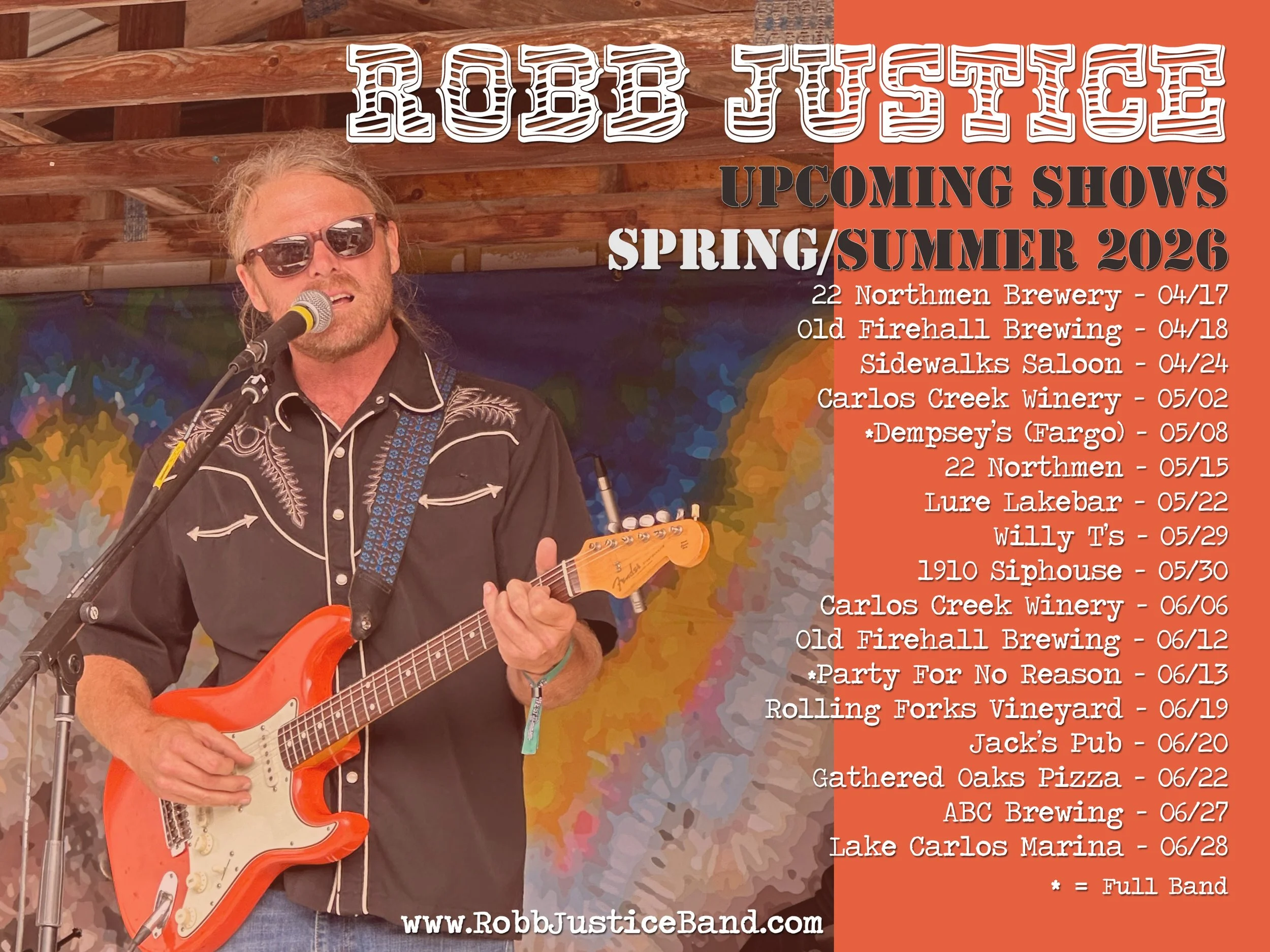 “The blues is often associated with the Mississippi Delta, but there’s also a style of blues that exists way up at the northern tip of the Mississippi River too. Robb Justice exemplifies a style of north country blues with his road worn voice that carries the many miles he has traveled from Minnesota to Alaska and back again to the lower 48. There’s an authenticity in his music that speaks to the American spirit and condition.”